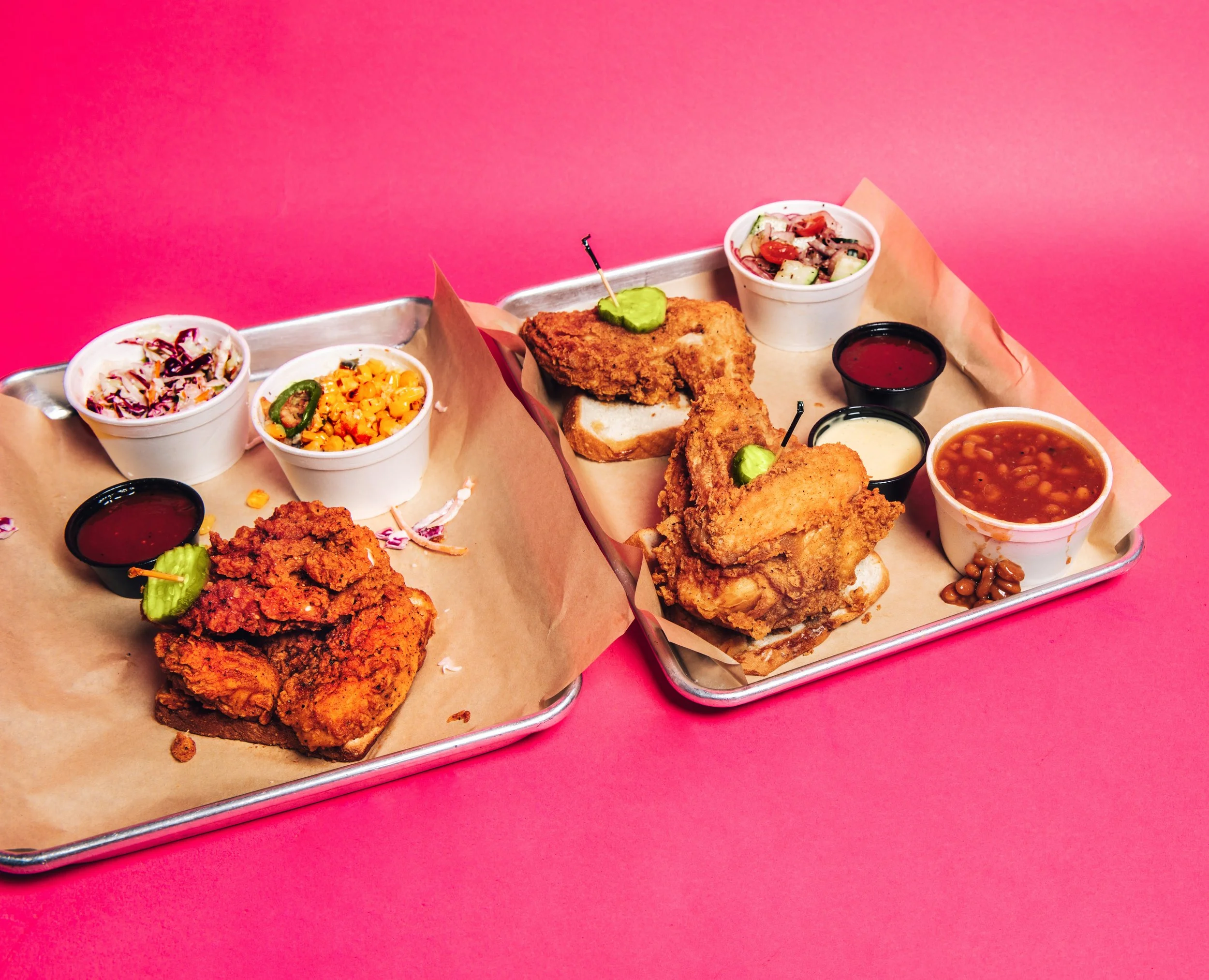 With a slogan “Almost Famous Chicken” and bright pink accents, I instantly felt the playful and humble qualities that embody this southern eatery.